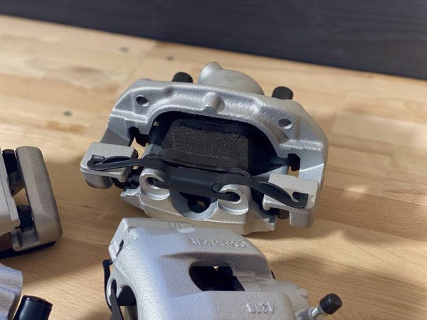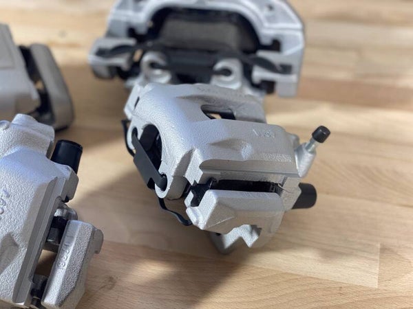 Volledig gereviseerde remklauwen voor een BMW Z3/Z4/E36/E46. Remklauwen zijn gedemonteerd en geinspecteerd waarna gestraald en gecoat in een 2K lak met RAL kleur 9006.
